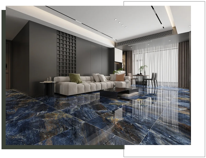 客厅选用【密尔沃】通铺于地面,以灰色为客厅的主调,恣意流淌的精致纹理,与窗外阳光交织互动,呈现高级、沉稳的雅致氛围。