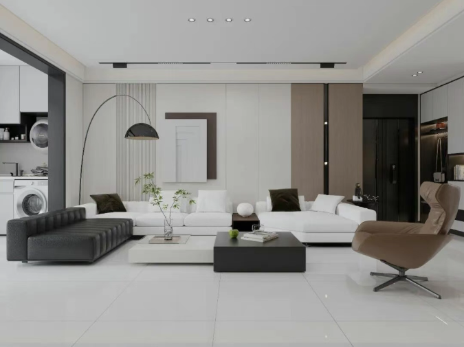 打破功能区的刻板界限,让连贯的石纹肌理成为空间的隐性引导。